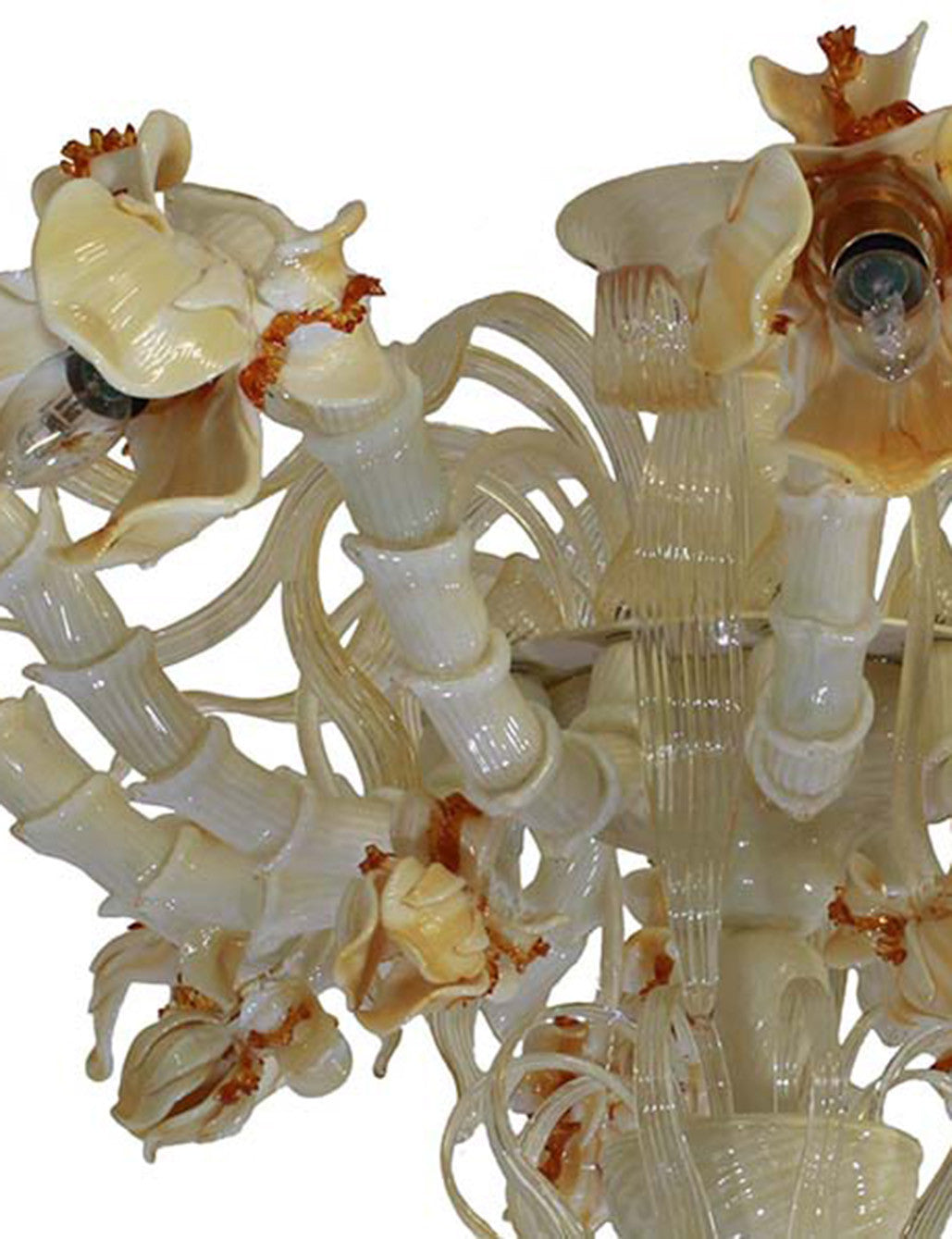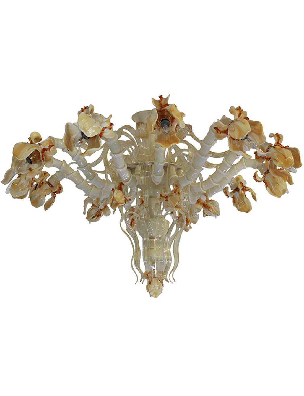 Murano Glass Amber Iris Light is an invitation to indulge in the beauty of rich and opulent flowers. Italian designers has created a feast for the eye in the shape of theatrical and playful flower Chandelier. Free form and versatile, this piece offers a contemporary take on natural beauty. A perfect solution for spaces with high and low ceilings Handcrafted with exquisite care by artisans in Italy.